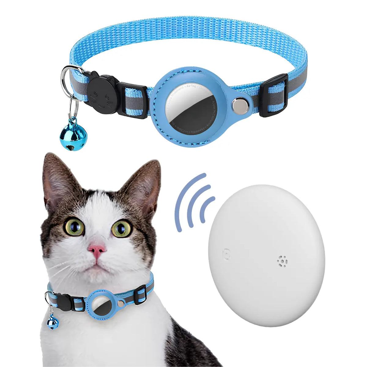 Coleira Rastreadora para Gatos + Air tag Azul - Rastreador em Tempo Real